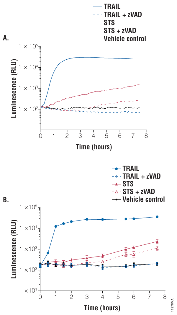 • Measure luminescence after 10–30 minutes either continuously or at a single time point.